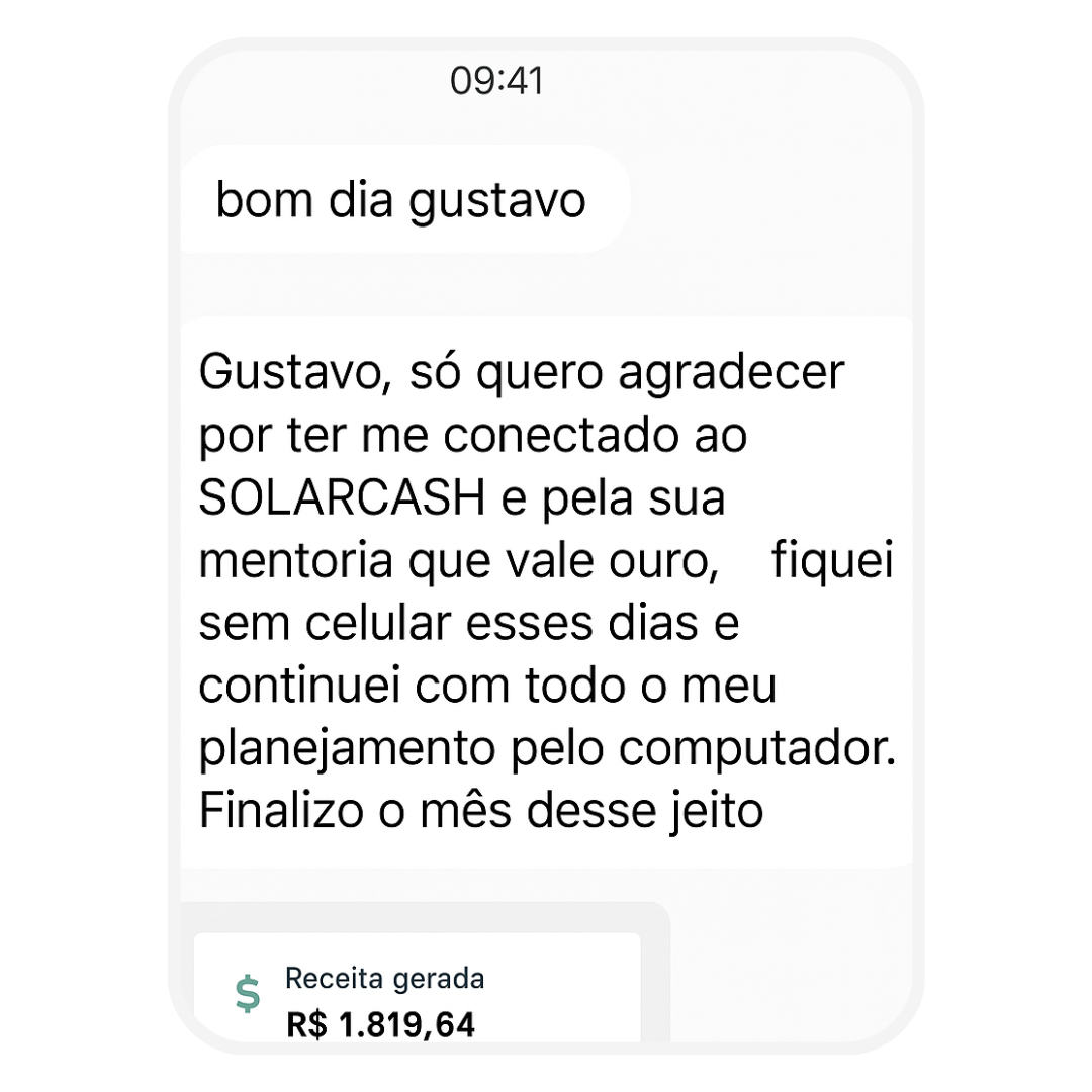 Criador do Método SolarCash, Gustavo transformou um modelo pouco explorado – a captação de contas de luz para geração distribuída – em uma estratégia digital altamente lucrativa, baseada na Lei 14.300/22, que regulamenta o sistema de compensação de energia no Brasil.
