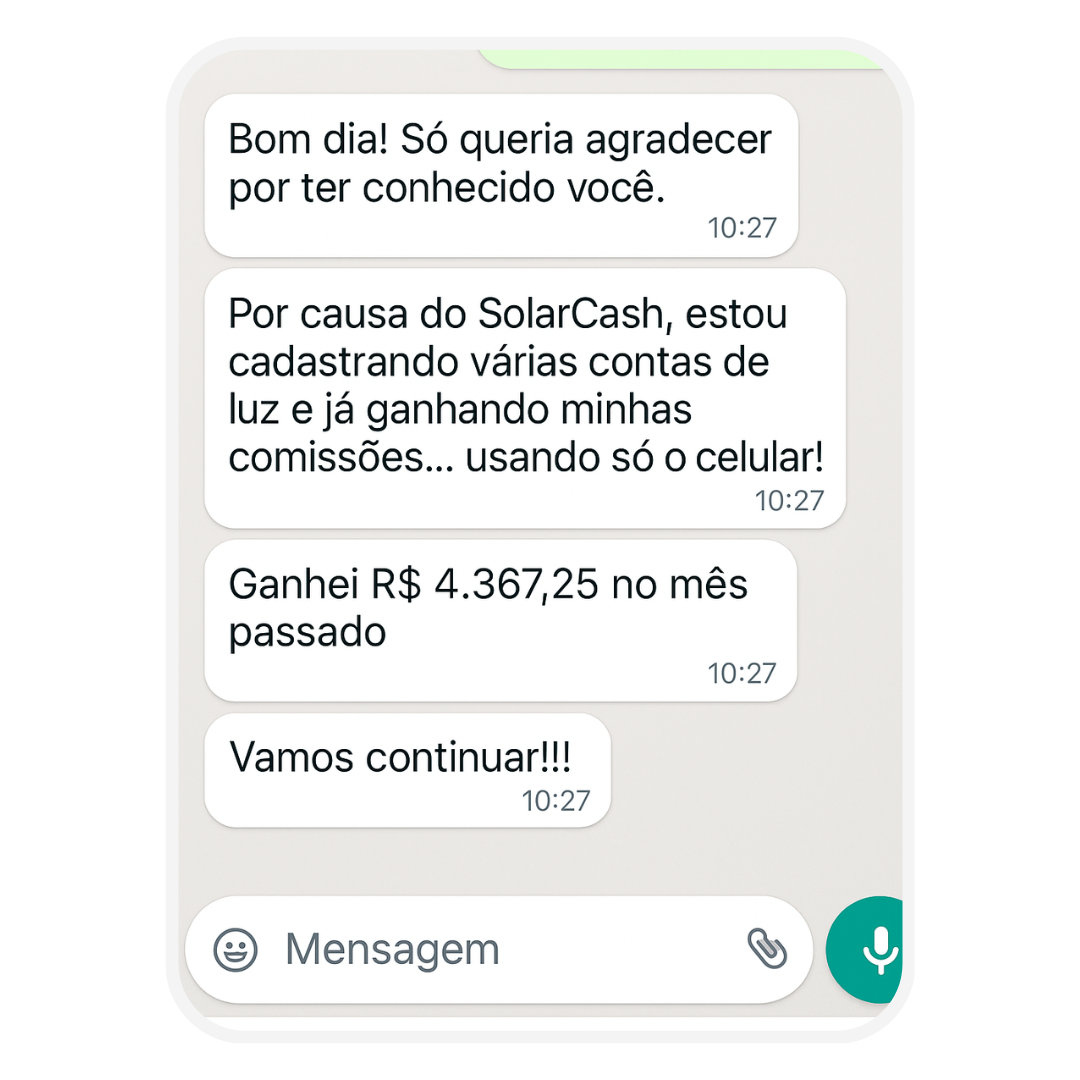 Aprenda, na prática, como sair do zero e começar a ganhar comissões de até R$5.000 por mês apenas cadastrando contas de energia elétrica — sem vender nada, sem precisar aparecer, e usando apenas seu celular.